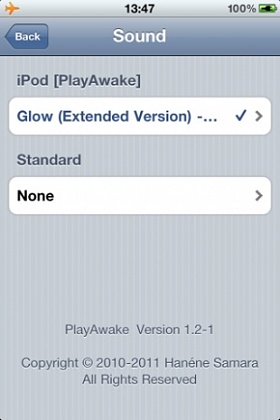 Sử dụng âm nhạc từ iPod làm âm thanh đồng hồ báo thức! Chỉ cần chọn một bài hát từ thư viện nhạc của điện thoại của bạn từ bên trong ứng dụng mặc định đồng hồ báo thức và bạn sẽ thức dậy nghe bài hát yêu thích của bạn!